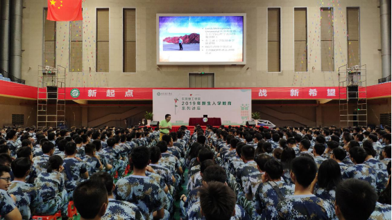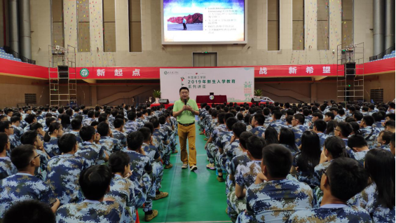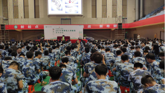 新生入学教育系列讲座之校友分享会在学校体育馆举行。分享会邀请到了h小说