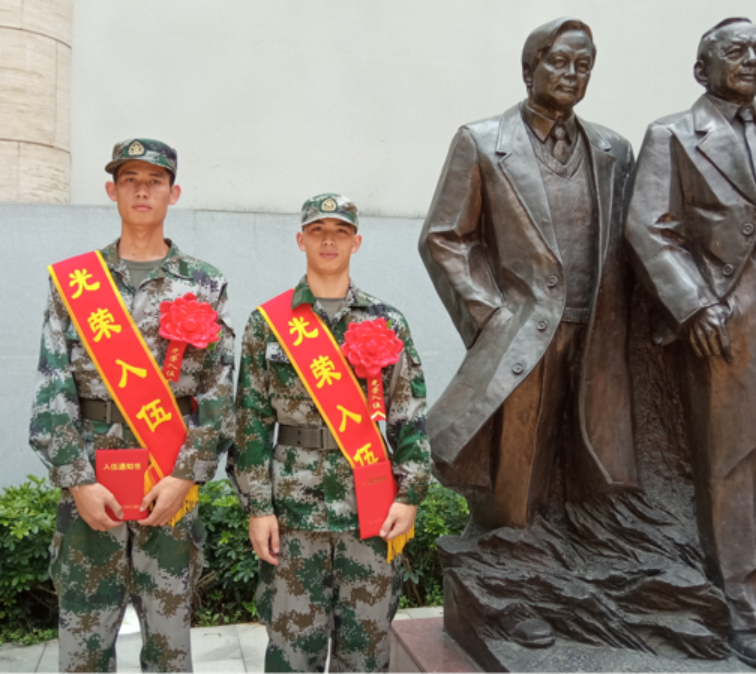 今年共有三名学生在学校应征入伍。其中何锐斌已于9月8日入伍。他谈到:“国无防不立,民无兵不安,强大的国防是社会发展、人民幸福的保障,国要强,我们要担当。工作与参军,都是建设祖国的一种方式,只是我选择了最直接的一种。”