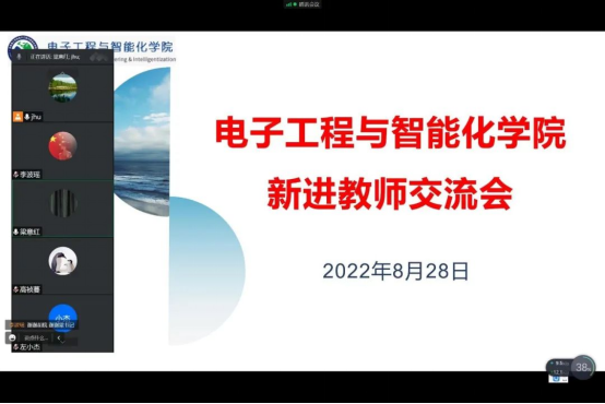 教学副院长胡君、学院党委副书记梁意红与李波瑶等9位新进教师在线交流,分别从教学工作、师德师风建设的角度,引导新进教师明确岗位目标任务。