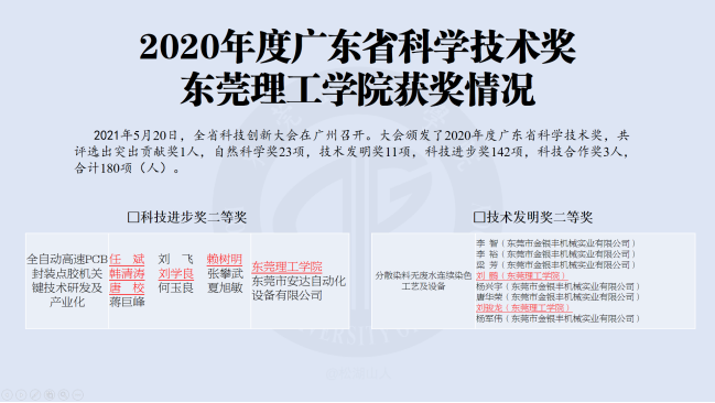 和东莞市安达自动化设备有限公司完成的“全自动高速PCB封装点胶机关键技术研发及产业化”荣获广东省科学技术奖科技进步奖二等奖,h小说