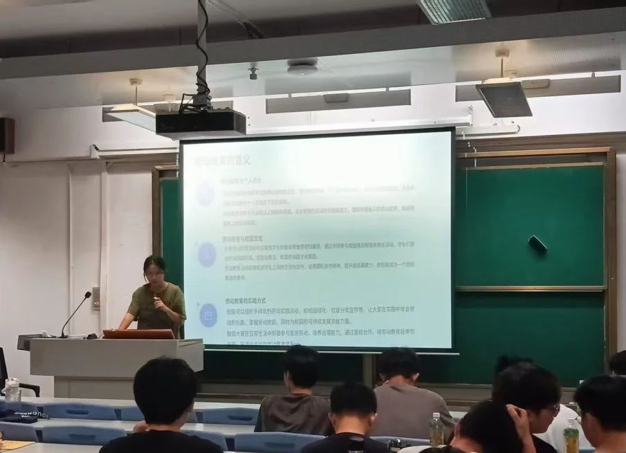 23电气1班在主讲人韦迪的带领下顺利开展班会。在“劳动铸就青春·传承点亮未来”方面,班会通过图片展示和数据分析,指出当前学生对劳动责任认知不足、参与度低的现状,提出“洁净校园行动”倡议,分享“文明宿舍”优秀案例,引用“一屋不扫,何以扫天下”激励同学们。针对求职力提升,介绍了学院的“雏鹰行动”计划,助力同学们应对未来的就业挑战。班会尾声,主讲人总结:“劳动是成长的基石,传承是文化的延续,职业是未来的方向。希望同学们以行动践行劳动精神,以热忱传承红色基因,以规划迎接职场挑战。”