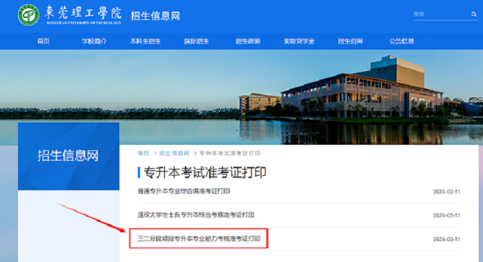 2.点击“三二分段专升本转段专业能力考核准考证打印”。