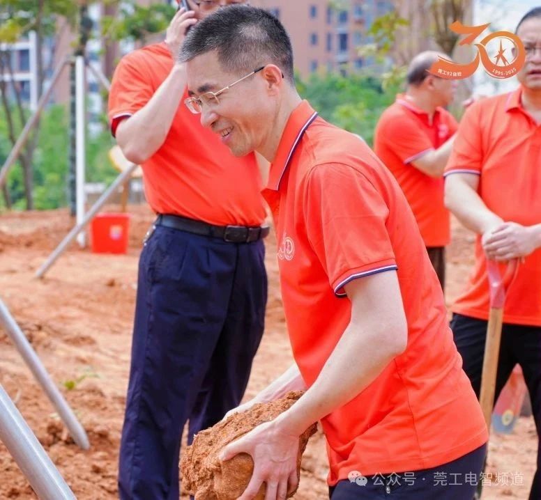 校友们为新区捐赠 15 颗黄花风铃木,并亲手栽种。挥锹铲土、扶苗填坑、提水浇灌,每道工序有条不紊。“希望这些黄花风铃木能为母校增添新景,也愿学院发展如这树木般蒸蒸日上。” 一位校友说道。棵棵树苗扎根沃土,承载着校友们对母校的拳拳深情与美好祝愿。