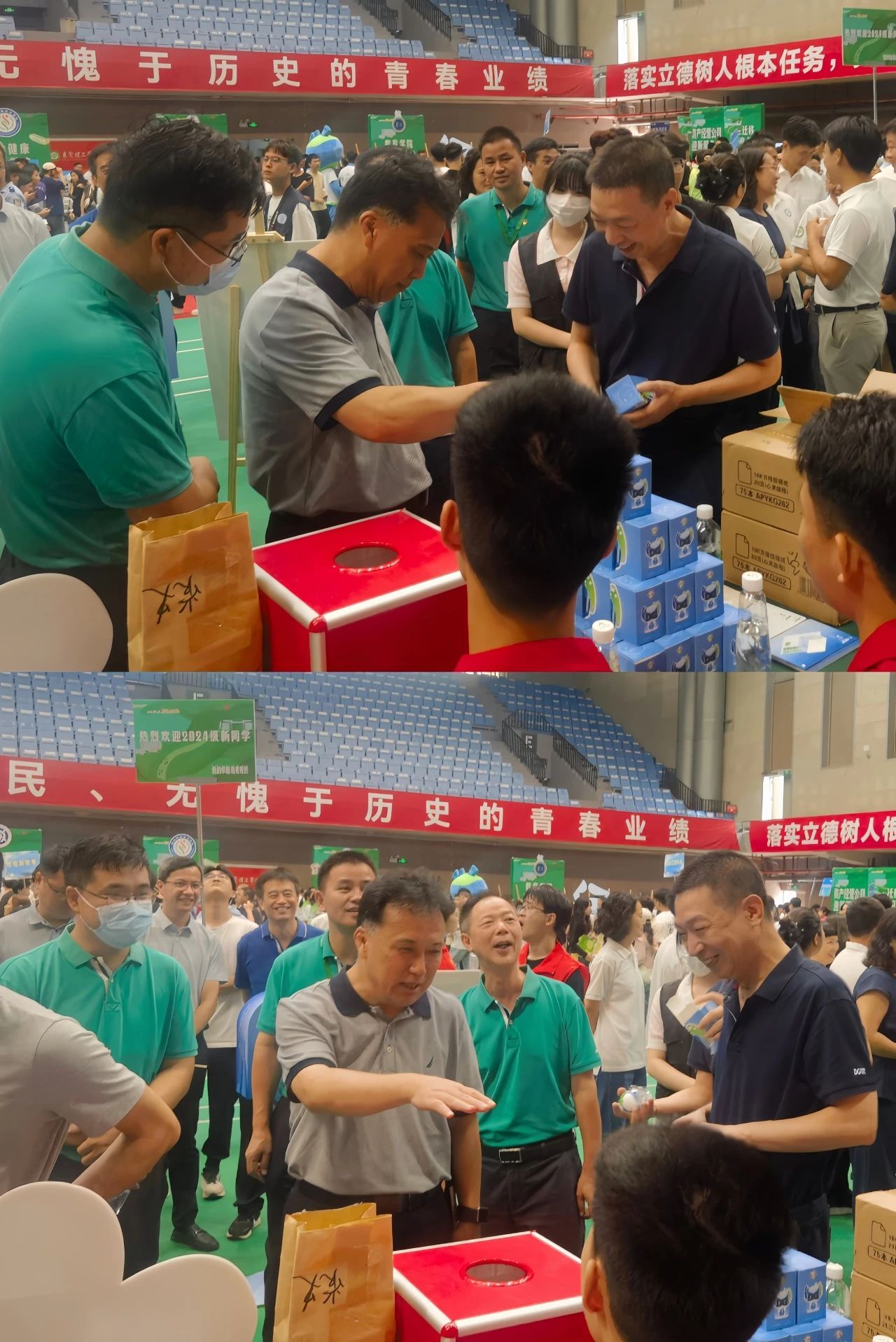 校长马宏伟,校党委副书记李忠红等领导一行来到迎新点指导工作,与大家沟通交流。