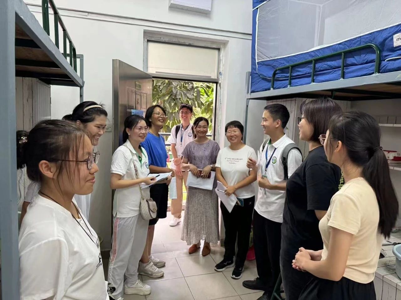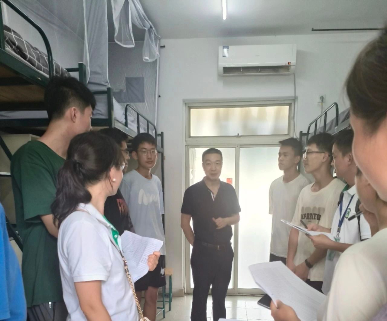 院领导、新生班主任、辅导员、助班走访新生宿舍,关心问候新生入住情况。