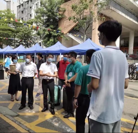 党委书记兼执行院长胡耀华和其他院领导,早早地来到学院迎新点前,检查迎新准备工作,力求工作做实做细,确保报到工作便捷高效。