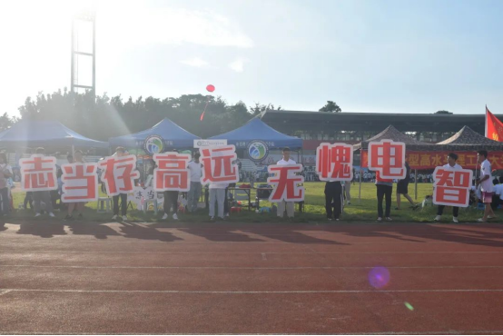 激昂的进行曲点燃运动会的序幕,英姿飒爽的电智代表团,迎着晨光向大家走来,一面面红旗舞动着属于电智人的骄傲和自豪!一张张坚定的面孔。他们,嘴角微微上扬;他们,挺拔着身姿;他们,大声呐喊着响亮的口号:“志当存高远,无愧电智人”!