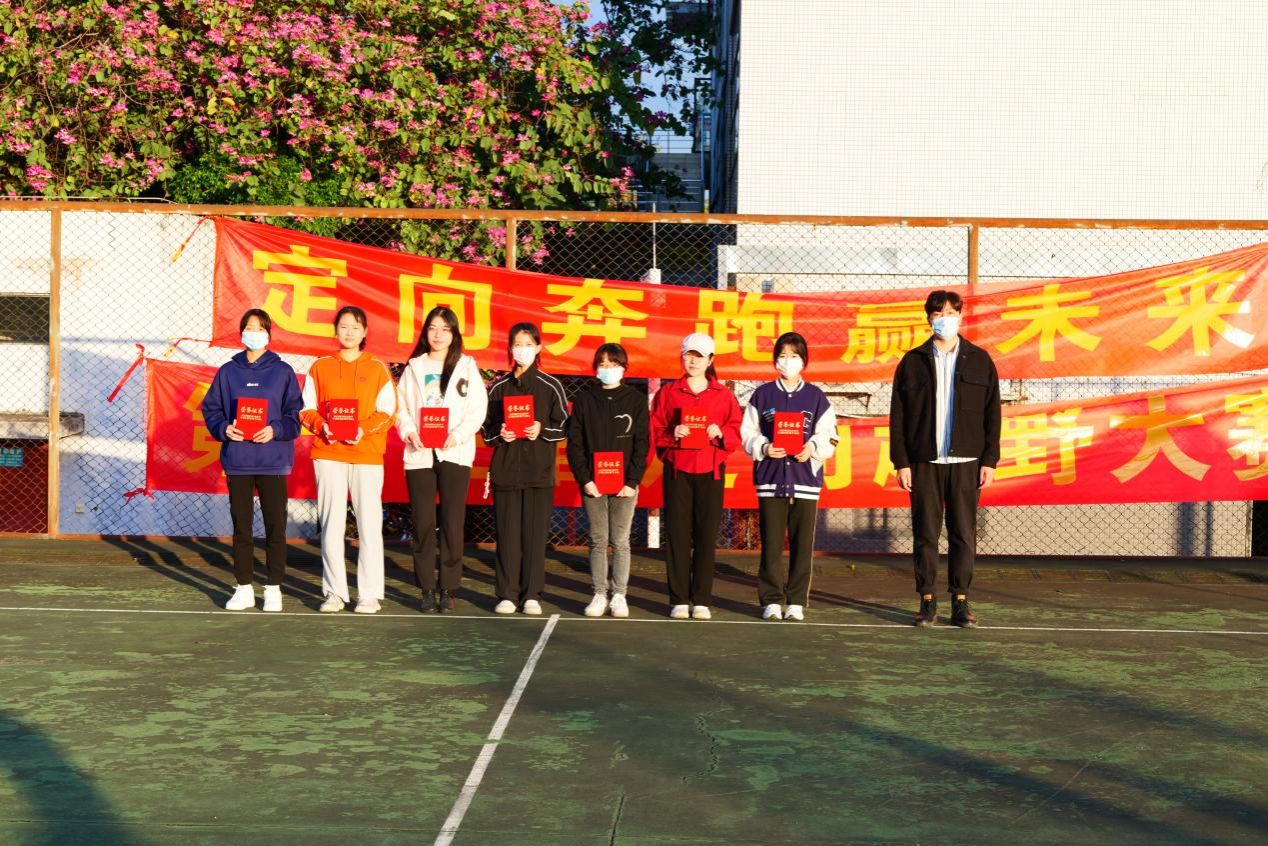 团委副书记张东老师为获得短距离定向个人男子组、个人女子组,以及团队赛组颁奖并合影留念。