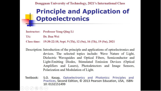 来自东卡罗莱纳大学黎永青教授于9月16日圆满完成了16个课时的线上讲授,物理与光电工程系的魏丹博士作为助教老师与同学们一起听讲该门课程并同步辅导,参与课程的校内校外人员总计达到27人。