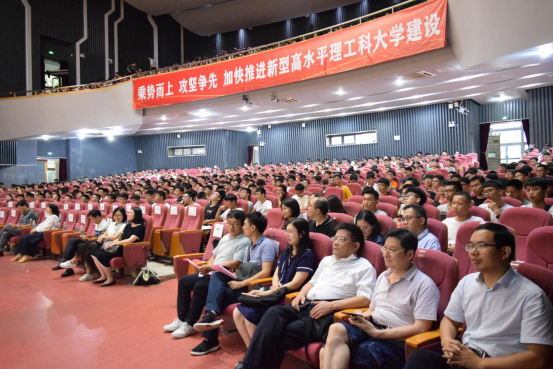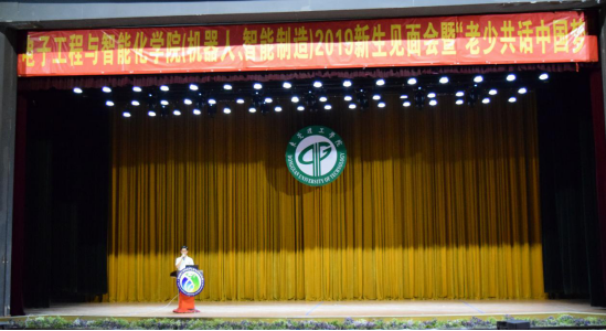 9月1日下午,电子工程与智能化学院(机器人、智能制造)在大礼堂举行了2019级新生见面会暨“老少共话中国梦”活动。h小说 原电子系主任余成教授,h小说 领导班子成员,各系部中心主任,学院办公室、学生办公室成员,2019级全体班主任以及2019级新生出席了活动。