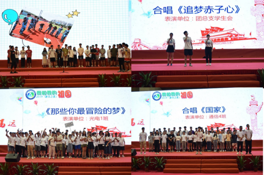 其中,自动化1、2班全体同学饱含深情朗诵诗歌“我的祖国”,抒发自己对祖国的热爱,通信1班同学合唱“我的青春我来莞”,用歌声表达自己将会在莞工开始实现自己理想的激动心情。而通信2班的同学带来的舞蹈串烧,更是博得全场眼球,赢得阵阵掌声。此外,晚会还设置了互动游戏环节——说方言猜生源,为同学送上精致的小礼品。