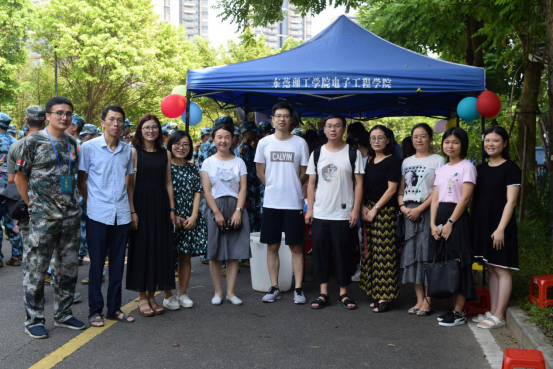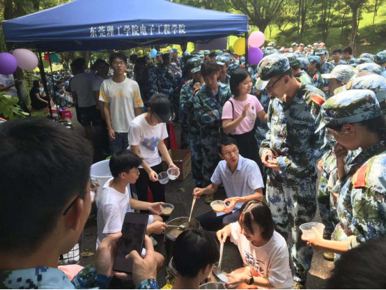 虽是初秋,烈日当空。9月10日上午,电子工程与智能化学院党委书记邓成良和全体辅导员、新生班主任来到真草训练场对同学们进行慰问,并为在军训中努力训练的学子们 “送清凉”。